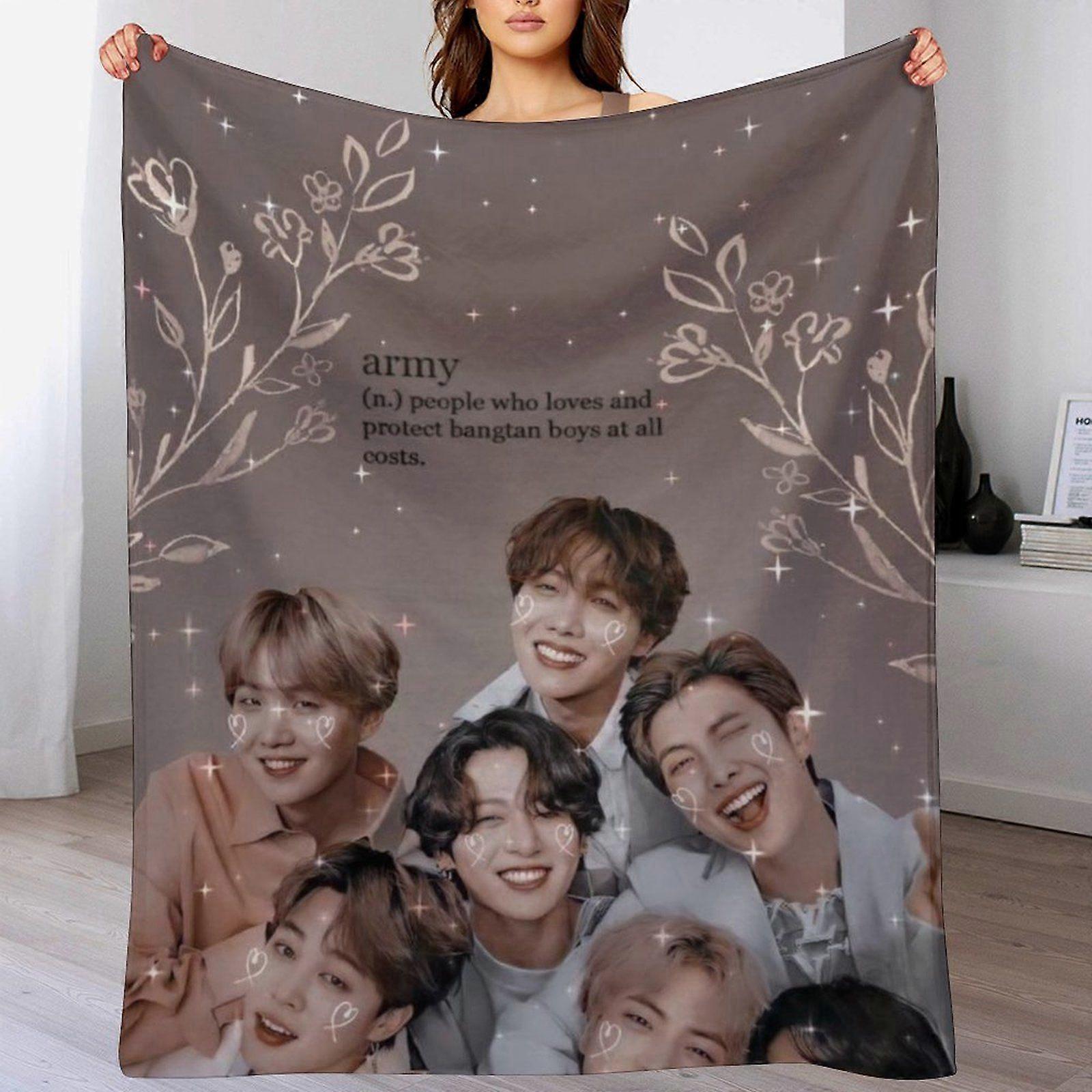 BTS Durable Fluffy Blanket for Sofa Car Outdoor Cozy Foldable Lightweight Skin-Friendly