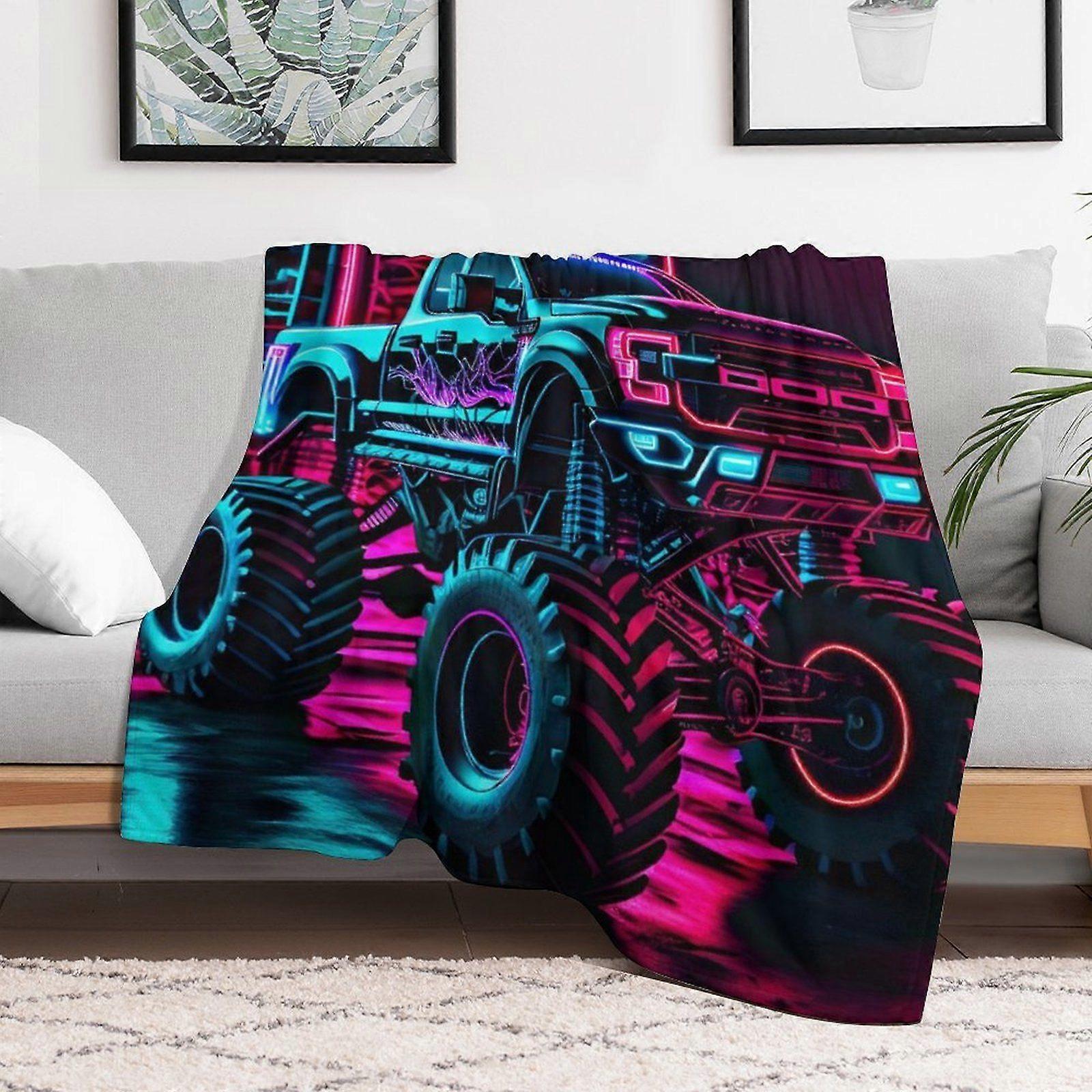 Monster truck Soft Velvet Blanket for Outdoor Travel Home Chilly Weather Breathable Compact Skin Safe