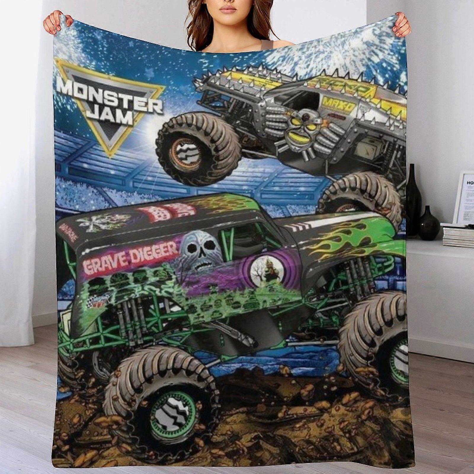 Monster truck Cozy Anti-Wrinkle Blanket for Camping Sleep Lounge Home Quick Drying Portable Velvet Plush