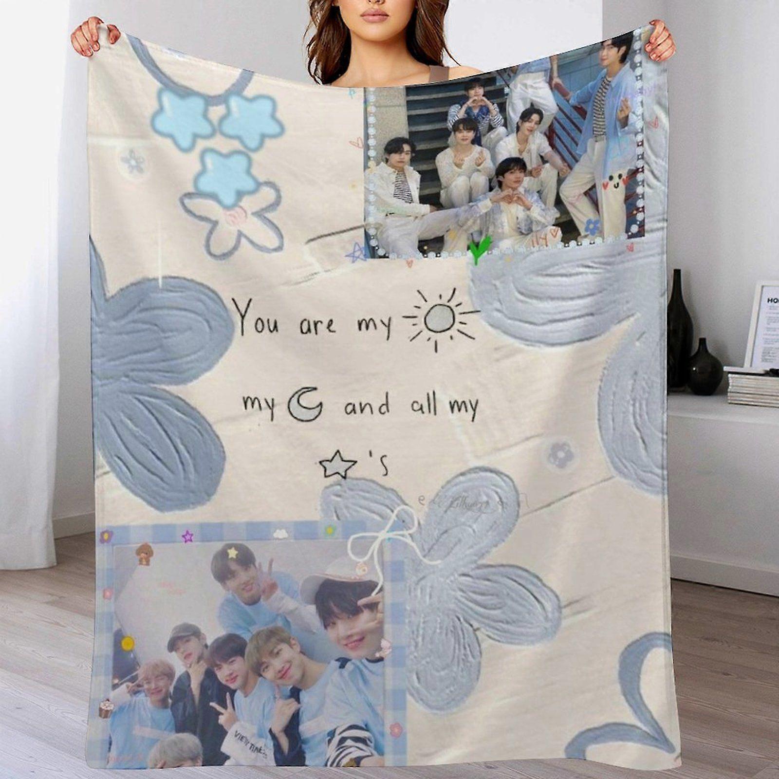 BTS Durable Soft Blanket for Office Lounge Travel Foldable Warm Plush Anti-Wrinkle Pet Friendly