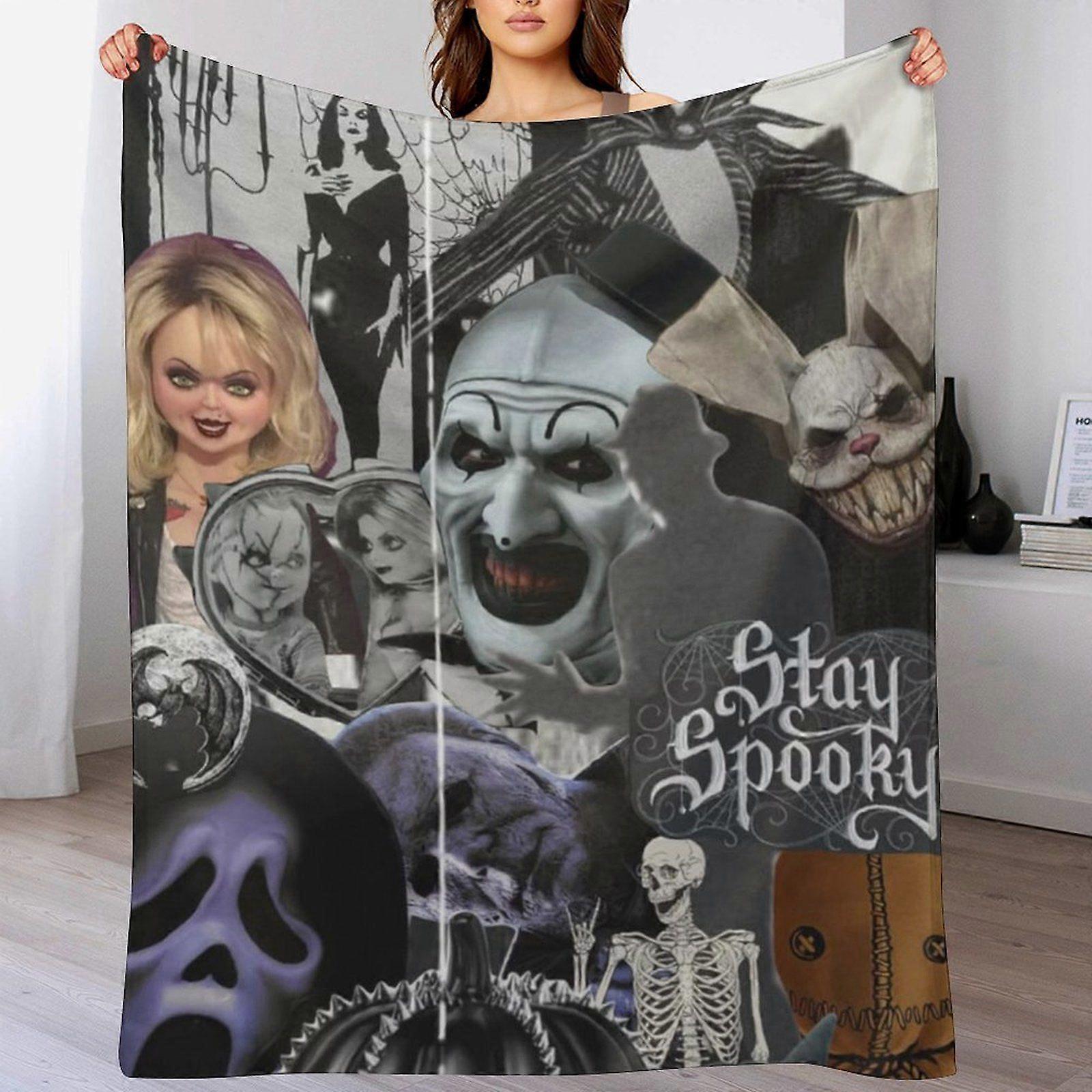 Halloween horror movie Durable Lightweight Blanket for Office Cozy Velvet Portable Skin Safe Anti-Shrink