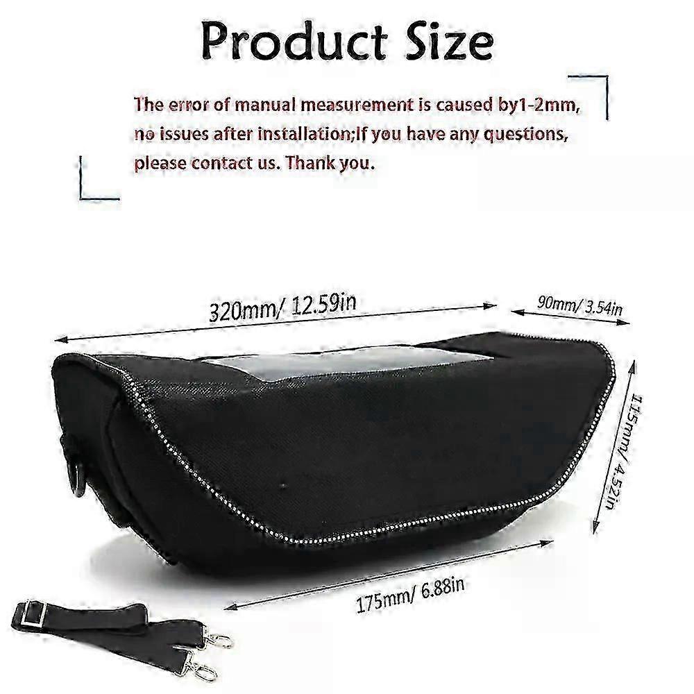 Specifications Hign-concerned Chemical:None Item Type:Covers & Ornamental Mouldings Motorcycle Accessories Handlebar Storage Bag Travel kit Waterproof and Dustproof Condition: Installation: simple installation Material: Nylon, SpandexItem Purpose: A functional handlebar bag specially developed for motorcycle models In order to allow the mobile phone to be charged on the move, the bag has a waterproof cable inlet. Colour: Black Fitment For BMW R1200/R1250 GS Adventure Feature (1) Easy-to-open flip cover, which has an extra compartment and a place to store pens, bank cards or other small items. (2) The large main compartment is closed by a waterproof and dustproof zipper. In order to allow the mobile phone to be charged while on the move, the package is equipped with a waterproof cable connector. In a watery environment, it can effectively provide a safe and reliable connector connector. (3) Convenient to carry, mobile phones, wallets, etc. can be installed inside, and short-term travel supplies can be stored. Note: Before buying, please check whether the product matches your motorcycle,sincerely.