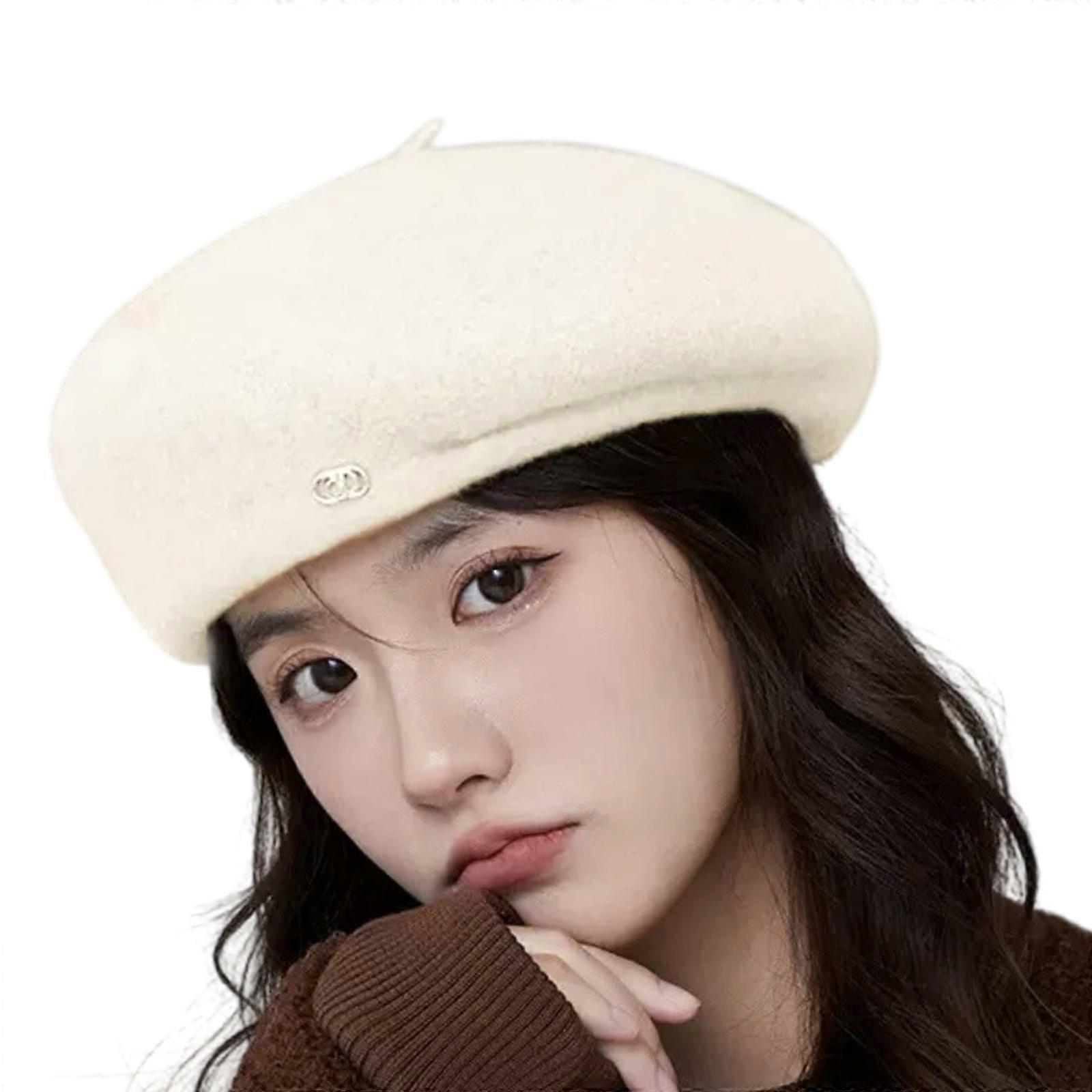 Winter Beret Stretchy Head Cover Warm Hat For Daily Use Outdoor Activities White