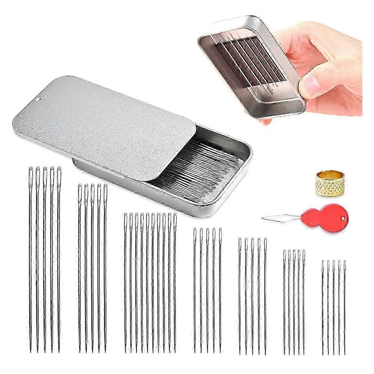 40PCS Sewing Needles Set, 7 Sizes Stainless Steel, with Threader & Magnetic Pin Cushion, for Embroi--