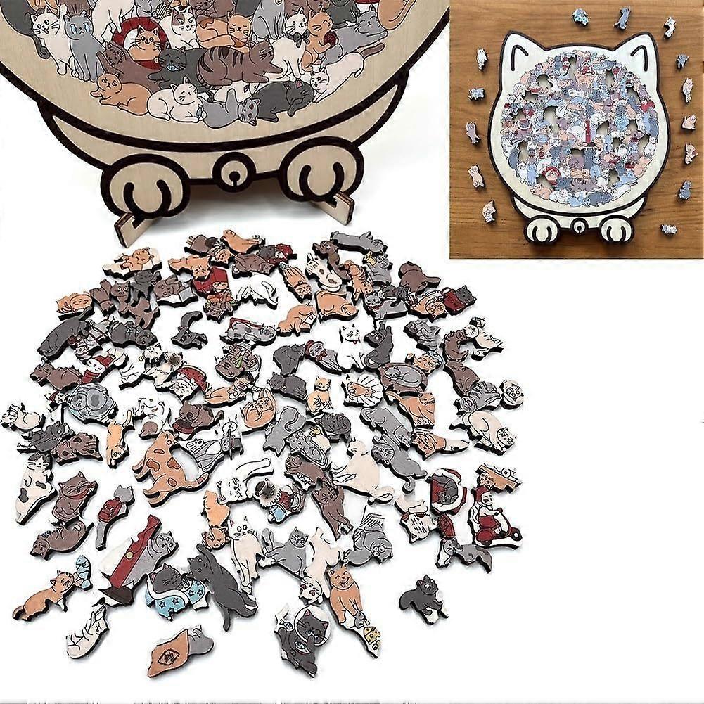 135-Piece Cat Shaped Wooden Jigsaw Puzzle, Cat Outline Design-Macaron