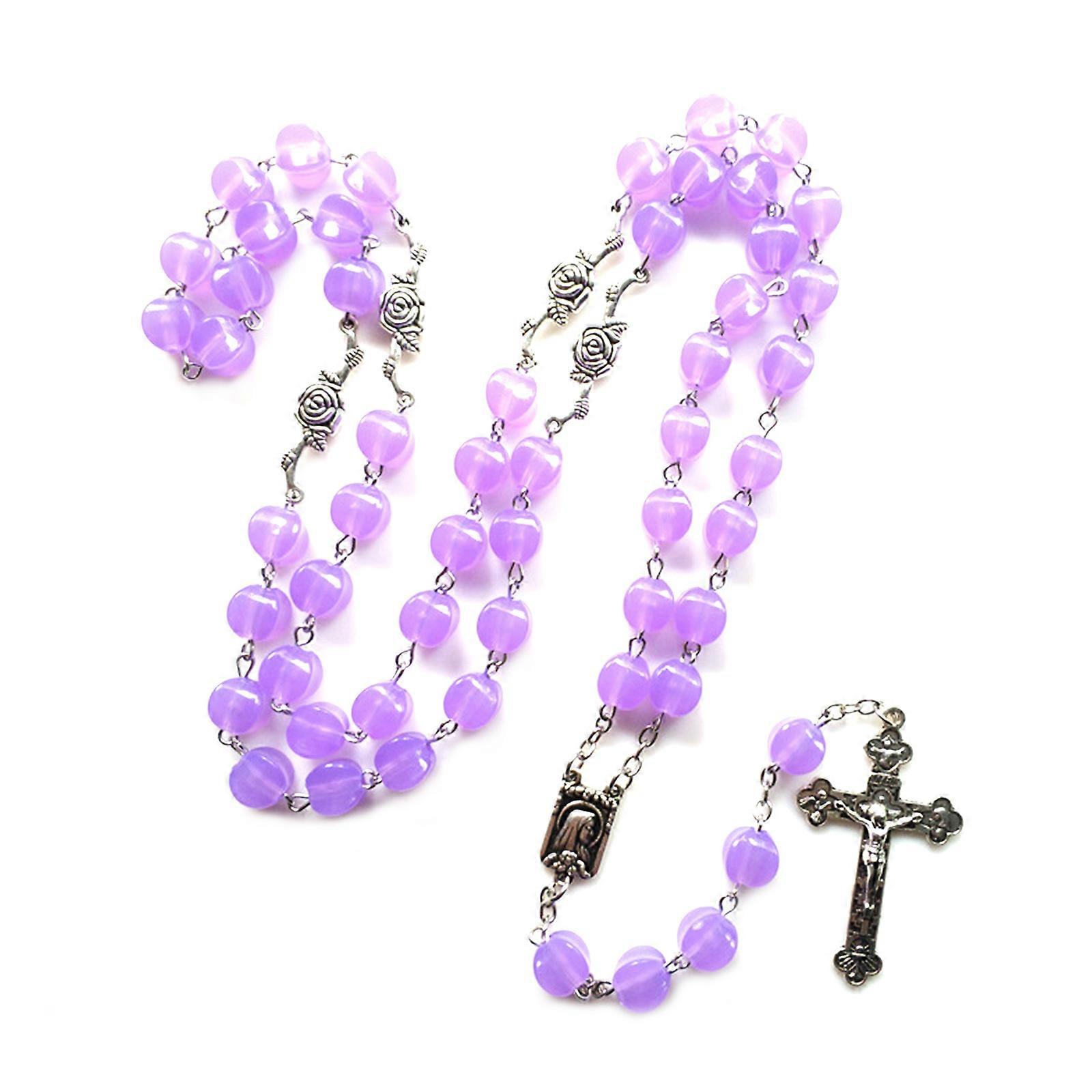 10mm Prayer Beads Luminous Rosary Necklace Jesus Christ for Cross Pendant Necklaces Glow in Dark Religious Jewelry Multicolor