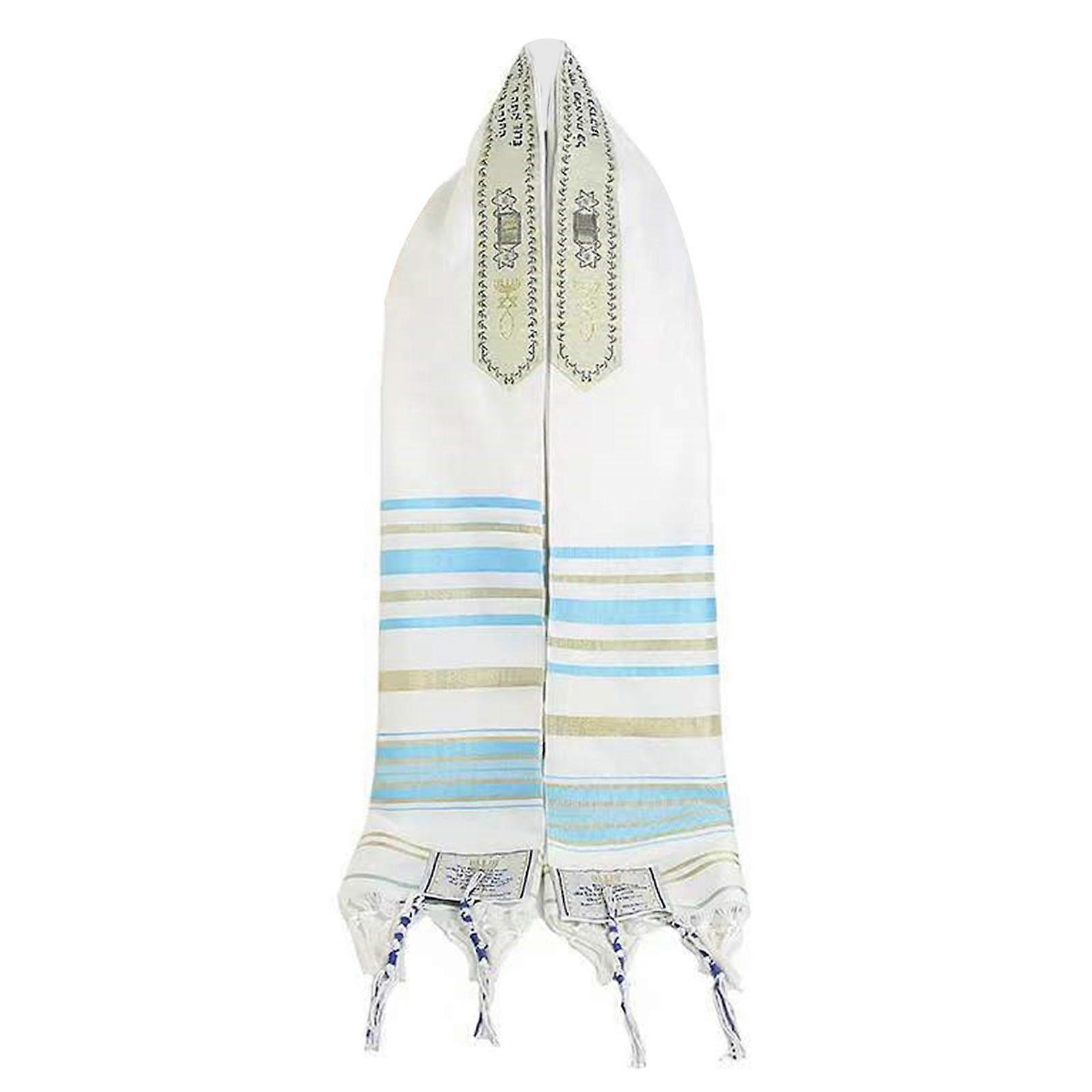 Premium Polyester Tallit Head Covering With Delicate Tassels Comfortable Lightweight Design For Men And Women Sky Blue