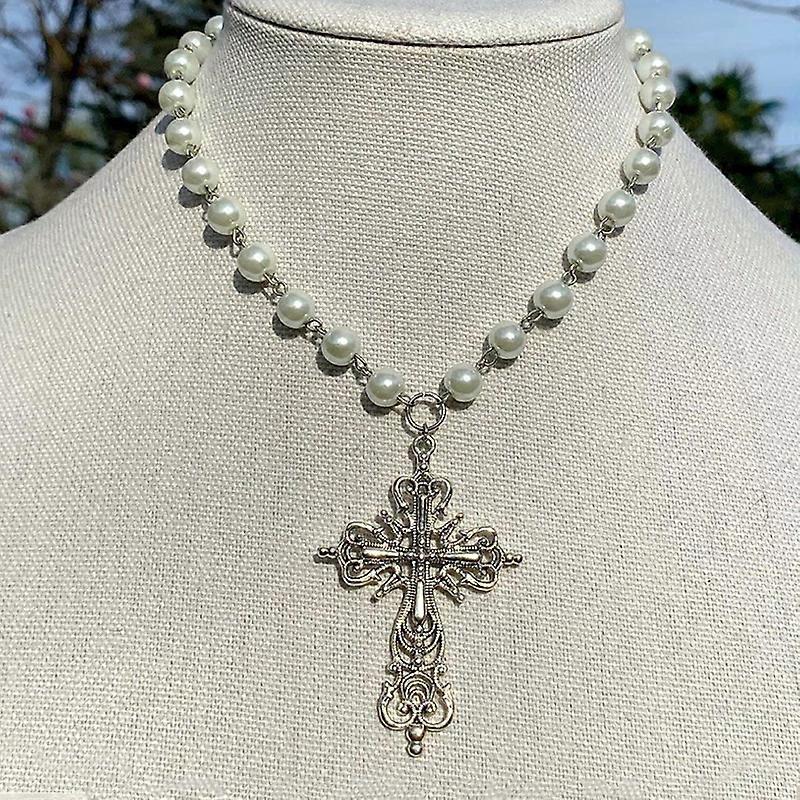 unique Fashion DIY Beads Cross Necklace Bohemian Chains Pendant Necklace Charm Choker for Women Y2K Accessory Punk Jewelry