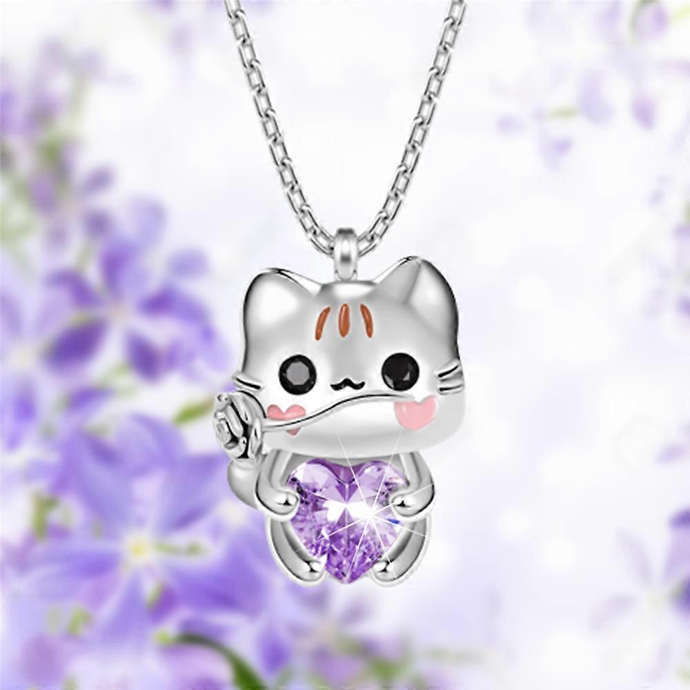 unique Creative Cartoon Cat Heart Crystal Pendant Necklace for Women Exquisite Animal Jewelry Party Accessories Lovely Girl Birth Gifts