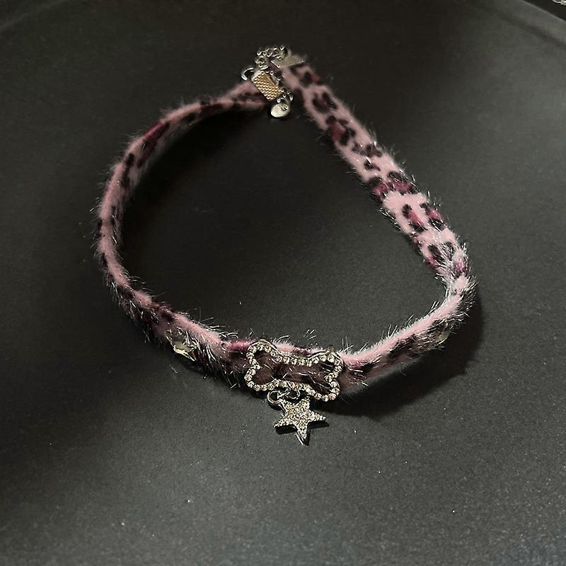 unique Plush Leopard Bone Choker for Women, n Kawaii Fashion Star Pendant Necklace, Harajuku Sexy Accessories, Y2K Jewelry Gift