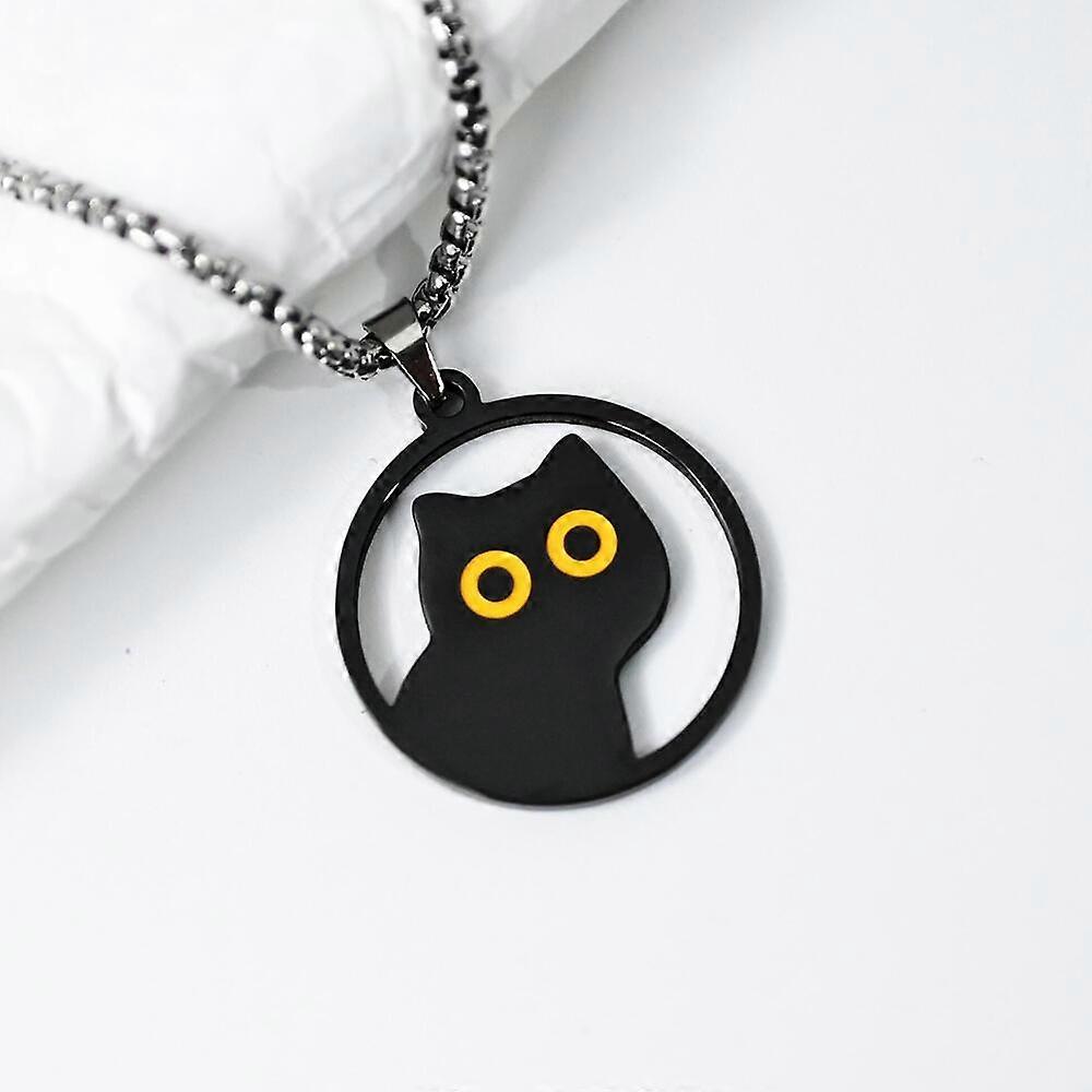 unique 2024 Titanium Steel Black Cat Necklace For Women Men Trend Black Round Cat Pendant Sweater Chain Couple Jewelry Neck Accessories