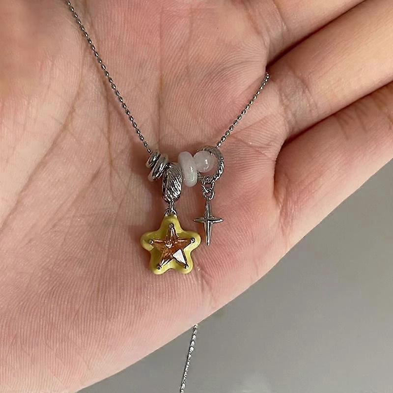 unique Fashion Yellow Lucky Star Pendant Necklaces Ladies Girl Simple Zircon Cross Elegant Necklace for Women Aesthetic Jewelry