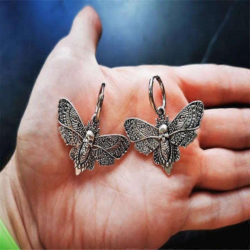 unique Gothic Vintage Moth Ear Hoops For Women Girls Fashion Pagan Witch Jewelry Accessories Gift Skull Moth Charm Pendant Earrings New