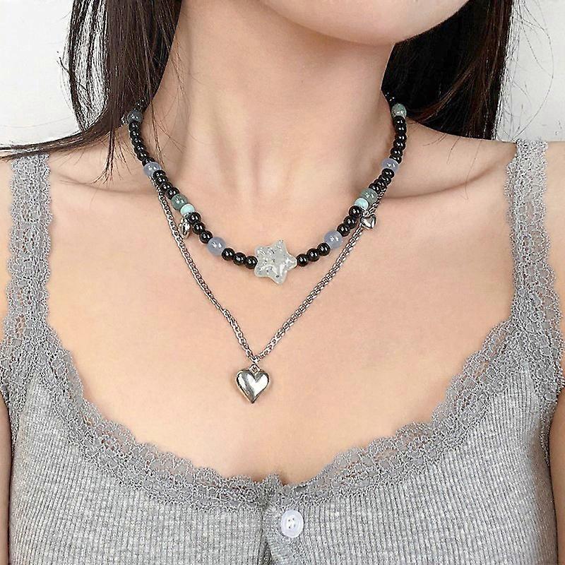 unique Goth Vintage Y2K Star Heart Pendant Beaded Chain Necklace For Women Men Punk Jewelry Accessories