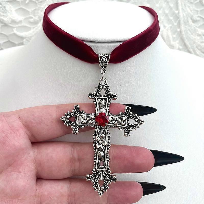 unique Goth Aesthetic Cross Red Velvet Choker Cross Pendant Necklace For Women Cute Chains grunge Choker collar indie collier Jewelry