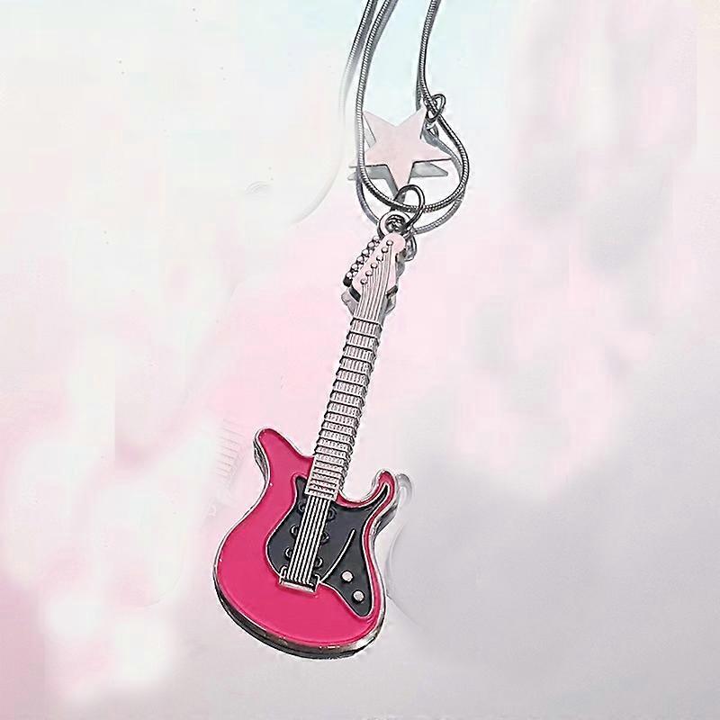 unique Grunge Pink Guitar Pendant Necklace Charm Goth Jewelry Chains Star Necklace for Women Y2K Accessories Fashion