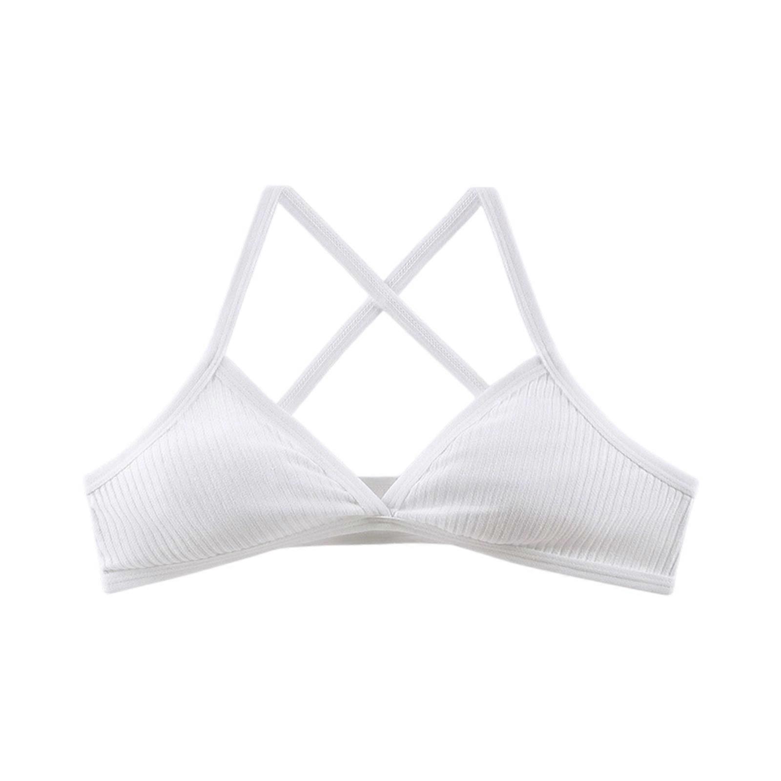 Women's Wirefree Ribbed Cotton Yoga Bra Breathable Fabric Crisscross Straps Bralette For Sports Lounging And Sleepwear White S