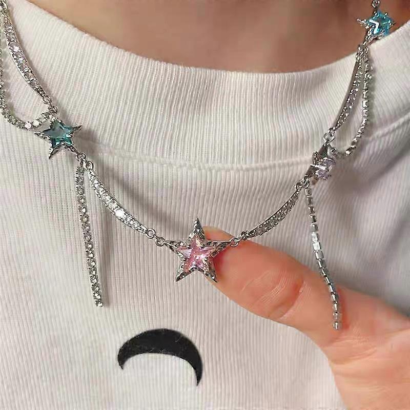 unique Colorful Dopamine Glitter Star Charm Choker For Women Bright Nion Fuchsia Purple Green Blue Crystal Charm Necklace Choker