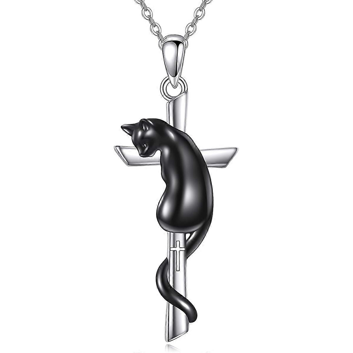 unique Exquisite Cool Black Cat Cross Pendant Men's and Women's Necklace Stainless Steel Chain Perfect Anniversary Party Gift Jewelry