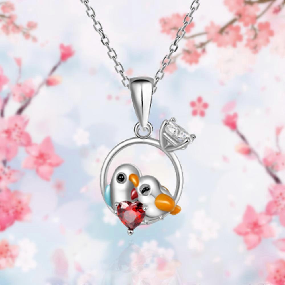 unique Creative Cartoon Couple Bird Heart Shape Red Crystal Pendant Necklace for Women Fashion Girl Party Jewelry Romantic Love Gifts