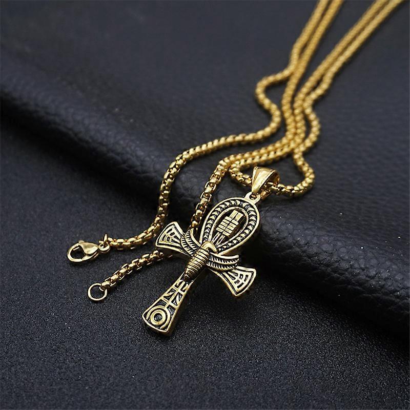 unique Egyptian Life Cross Pendant Necklace Fashion Retro Eternal Charm Stainless Steel Anka Egyptian-Style Jewelry Souvenir Gift 2023