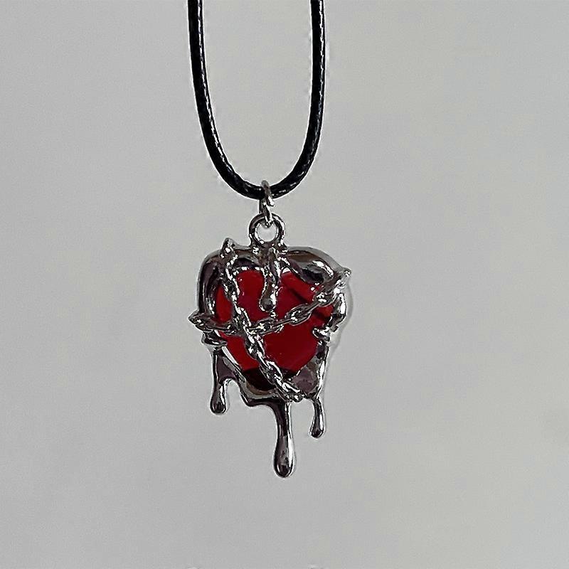 unique Vintage Y2K Red Love Heart Cross Pendant Snake Chain Necklace For Women Men Halloween Aesthetic Gothic Rave Jewelry Accessories