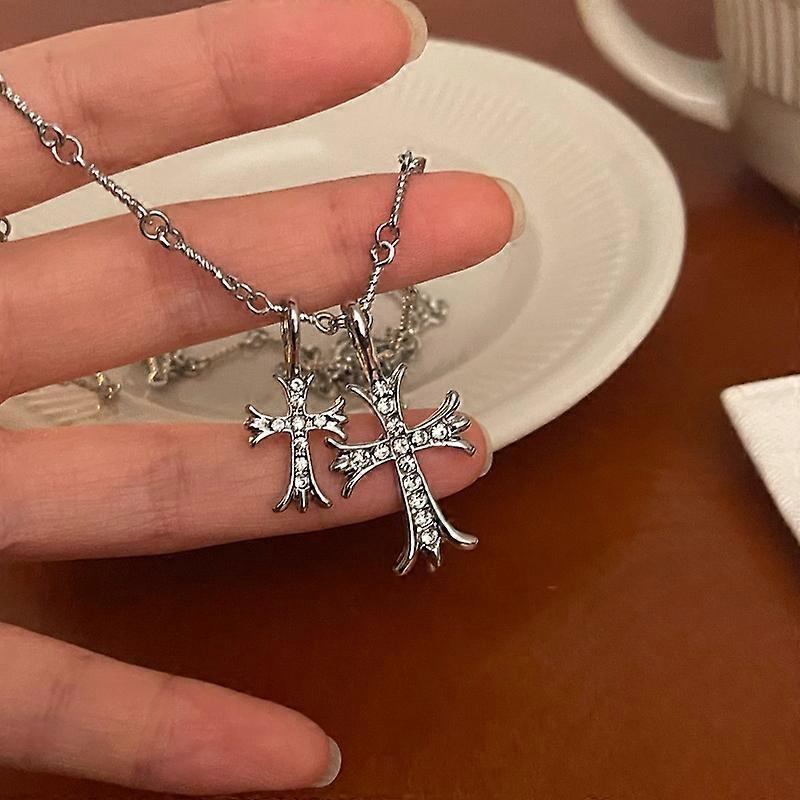 unique Exquisite Fashion Crow Double Cross Diamond-Encrusted Pendant Necklace Men's And Women's Hip Hop Light Jewelry Accessories 2023