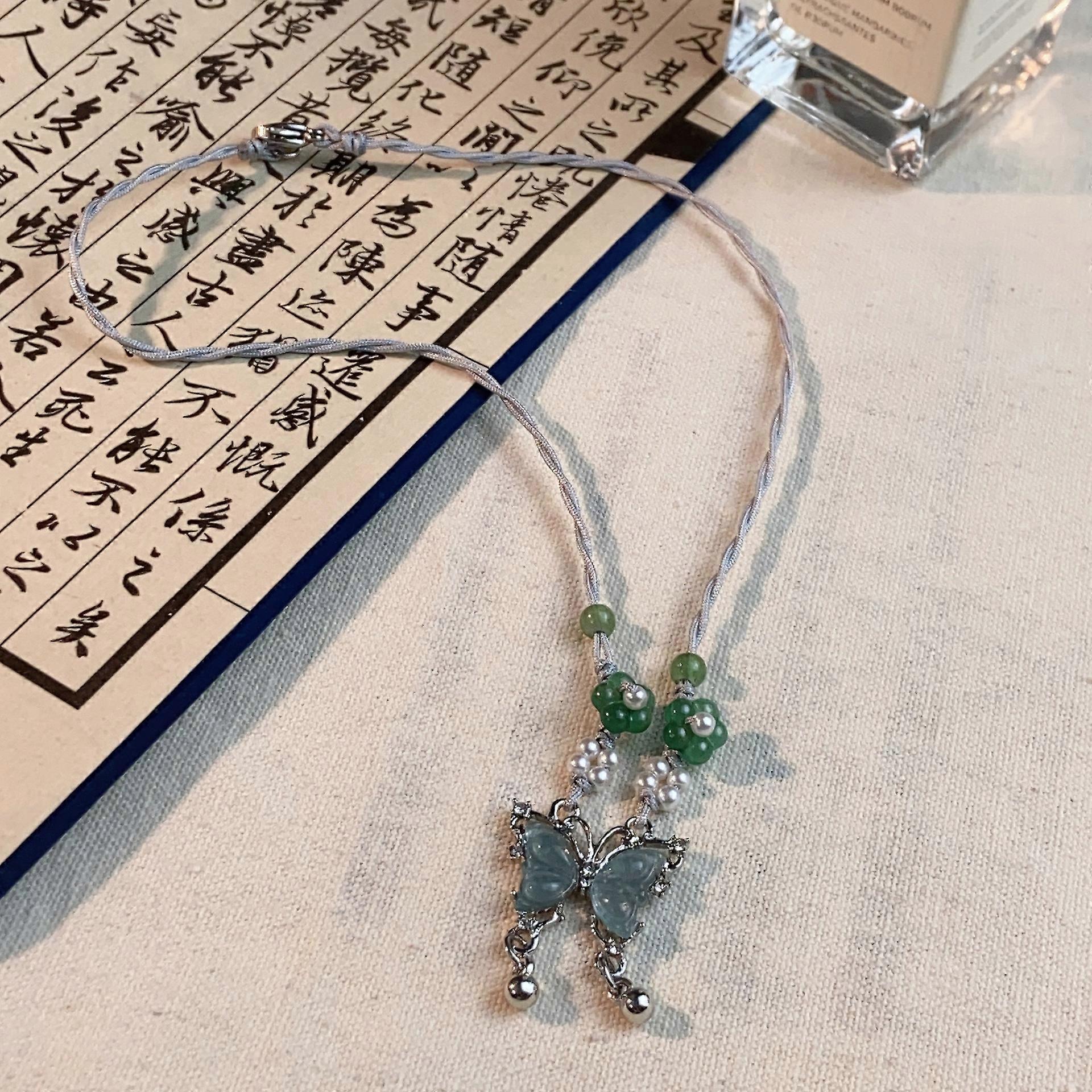 unique Elegant Chinese Style Butterfly Necklace Women's Hanfu Handmade Beaded Necklace Adjustable Cool Trendy Jewelry
