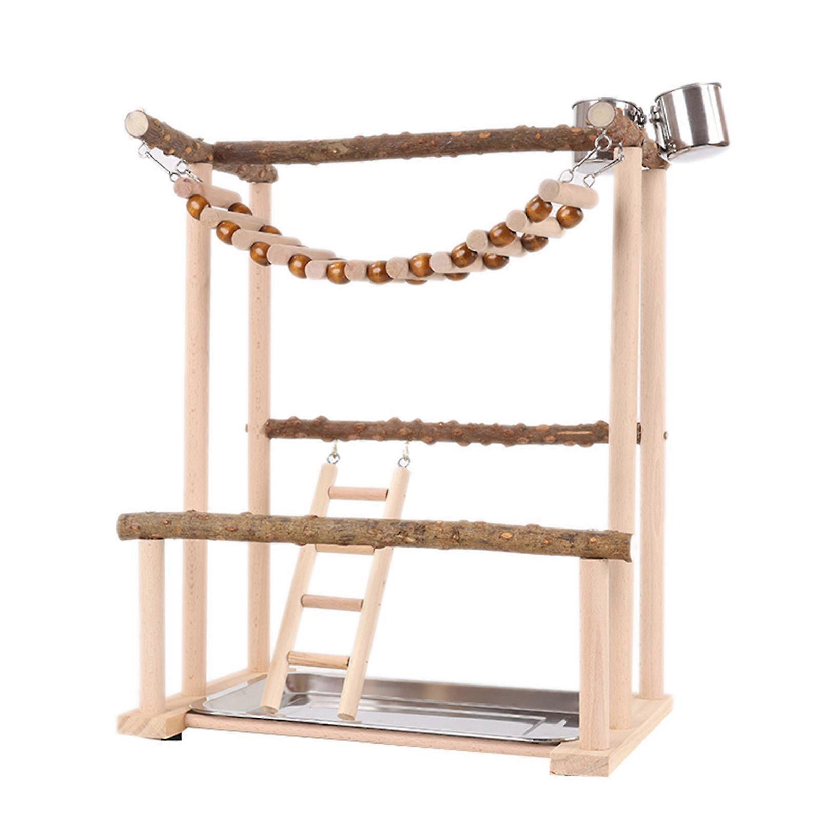 Budgies Cage Toy Stand Swing Parrots Feeding Cup Gym Toy Bridge Climbing Toy for Parakeets Cockatiel Multicolor