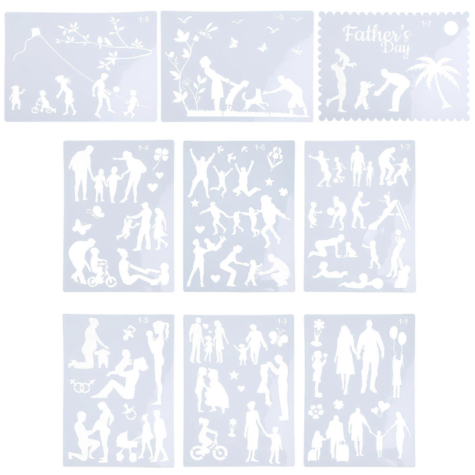 9 Pack Silhouette Painting Stencils Reusable Parent-Child Drawing Templates for DIY Lovers Kids Women Men Students Gift Multicolor