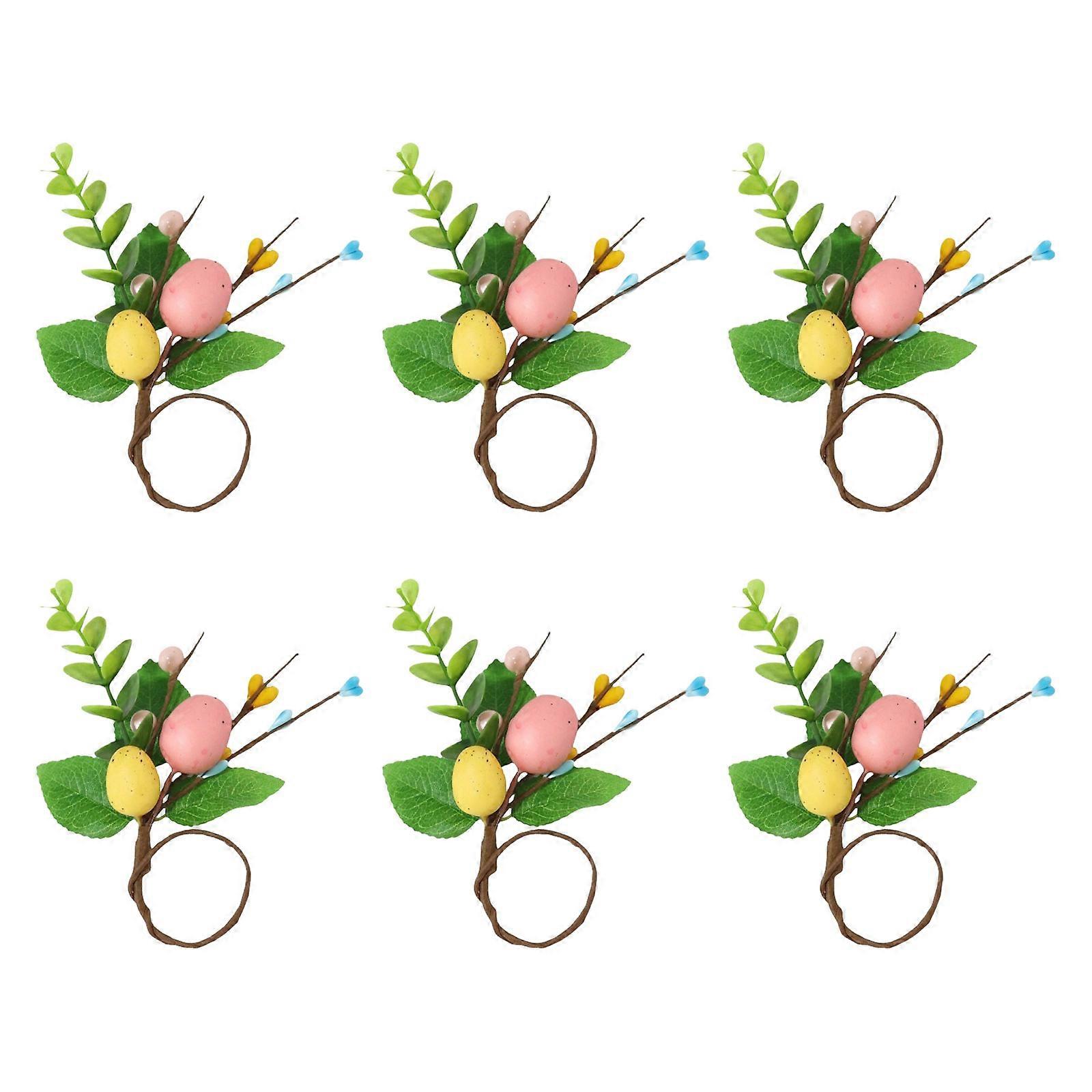 6pcs Pastel Easters Eggs Napkin Rings Set Rattan Holders for Dinner Parties and Festival Decoration Parties Supplies Multicolor