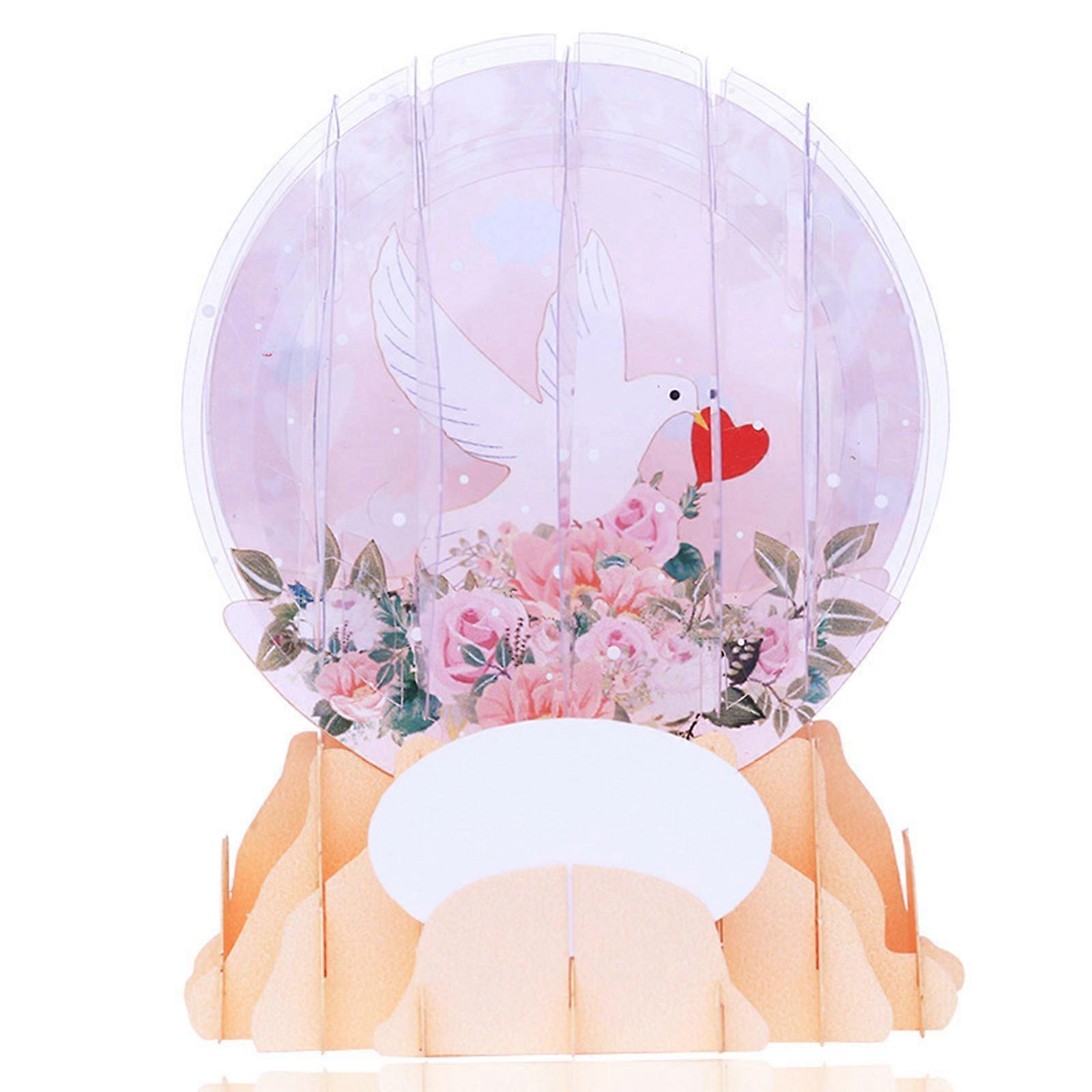 3D Valentine's Day Crystal Ball Greeting Card Pigeons Flower Foldable Cards for Couple Wife Wedding Anniversary Cards Multicolor