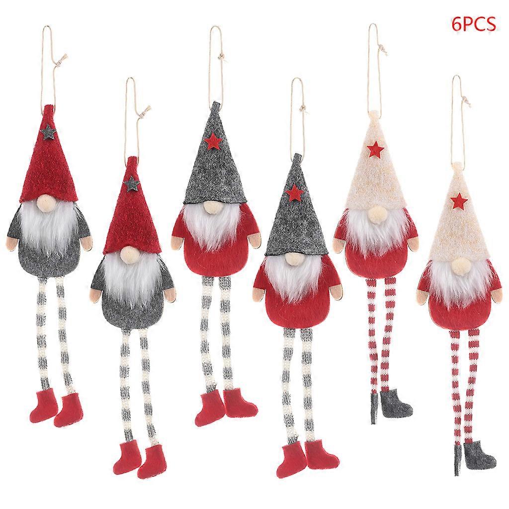 Christmas Gnome Pendant Cute Plush Elf Dolls Set of 6 Xmas Tree Hanging Decor for Home Farmhouse Front Door Decoration Multicolor