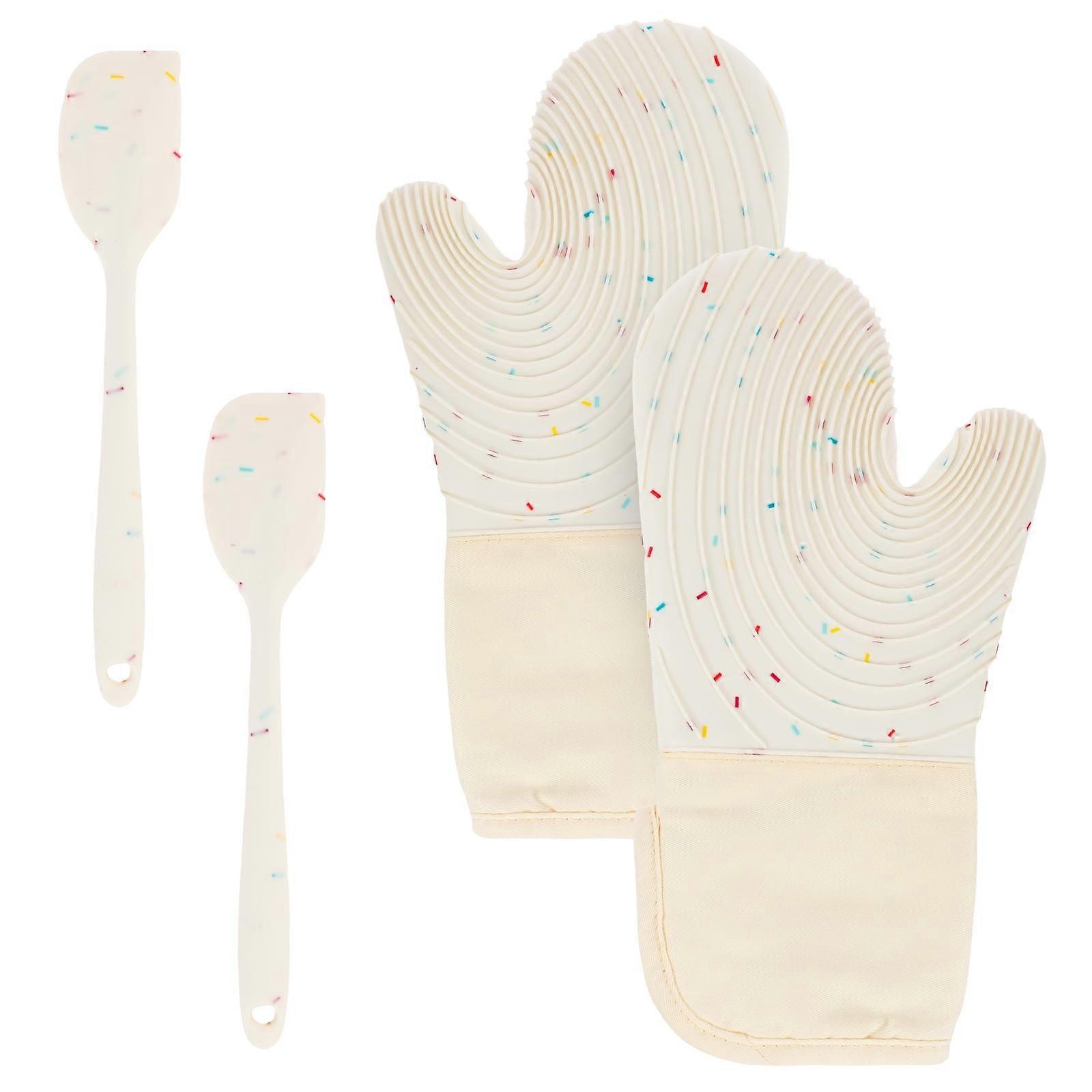 Wekvgz Silicone Oven Mitt with Spatula, Heat Resistant & Non Slip, Reusable & Easy to Clean, Compatible with BBQ, Baking, Cooking