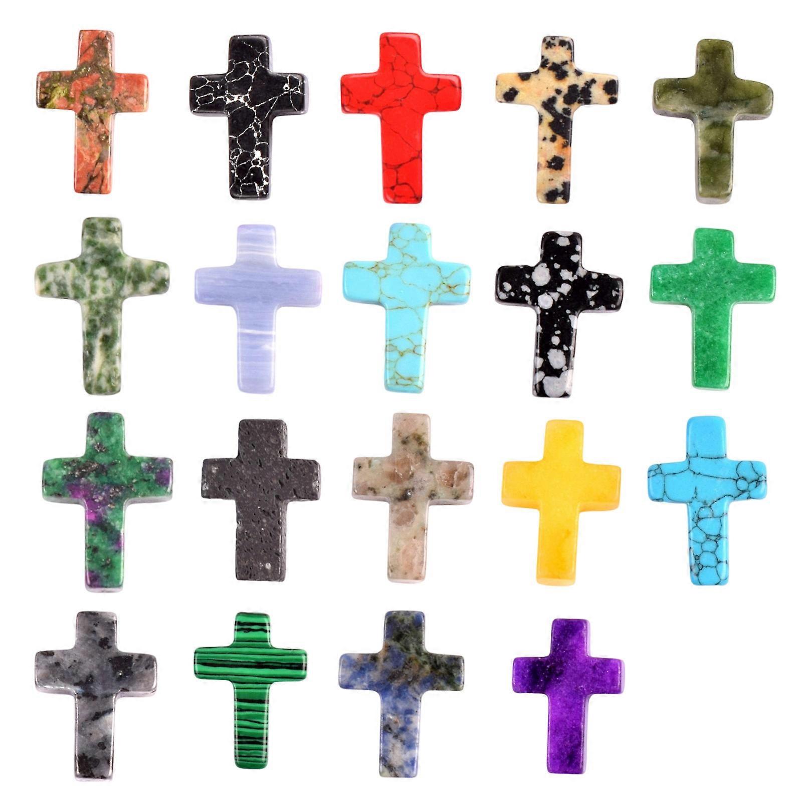 19 Piece Natural Crystal Crosses Holeless Gemstones Charm Decors Positive Jewelry Making Meditations Space Ornament Multicolor