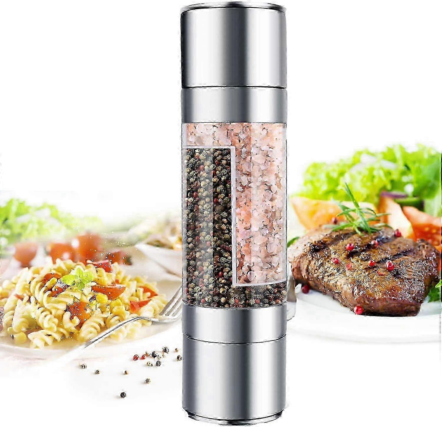 Stainless Steel 2 in 1 Manual Spice Mill with Salt, Pepper Shaker and Chili Mill