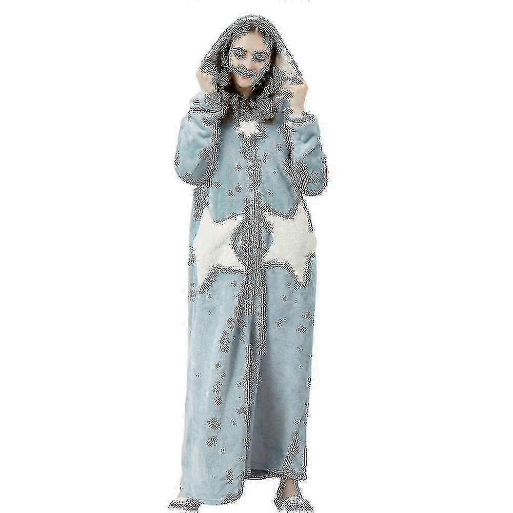 Women's Warm Hooded Flannel Dressing Gown - Soft Comfort Long Bathrobe Robe