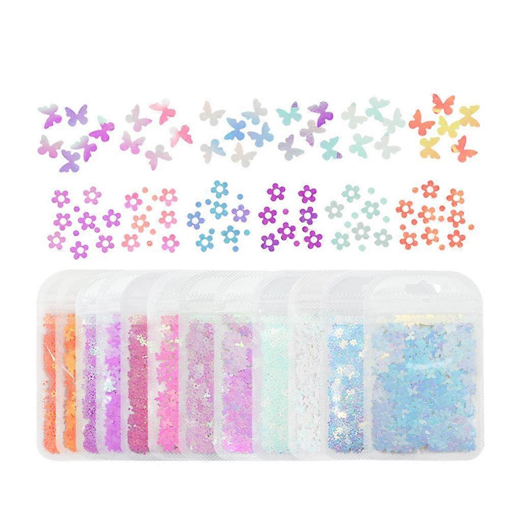 12 Bags for Butterfly Flower Shape Glitter Sequins Flakes Resin Epoxy Mold Filli Multicolor
