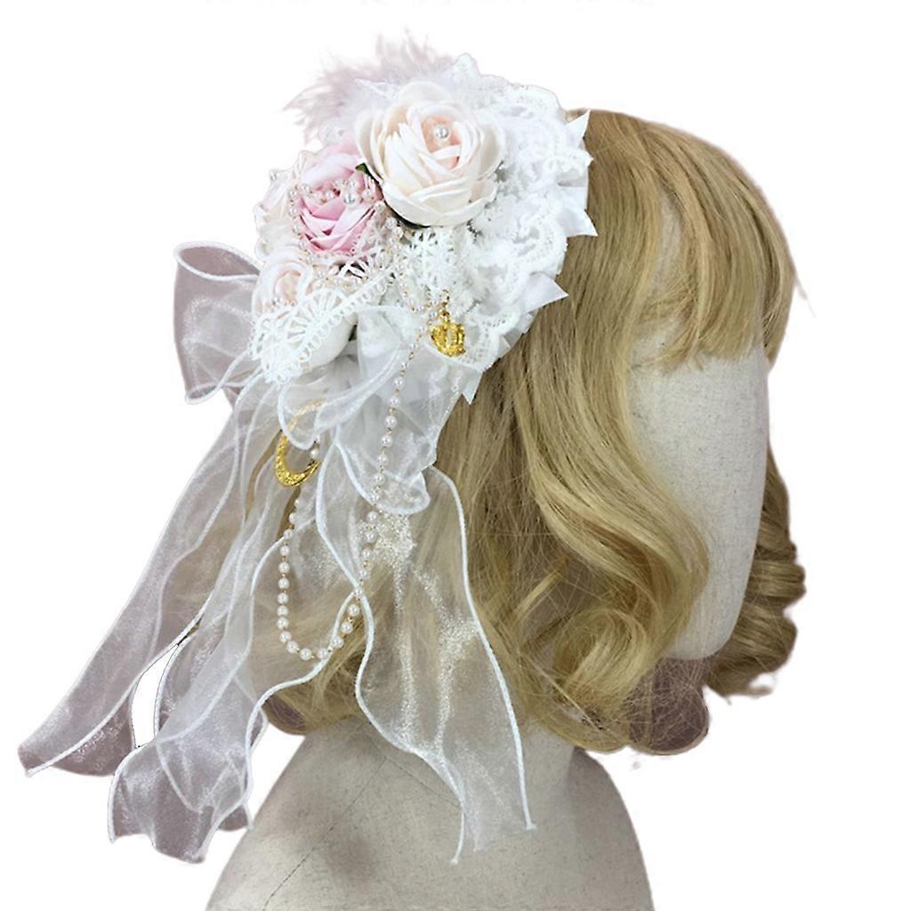 Lolita Bonnet Sweet Lace Flower Pearl Beading Top Hat Kawaii Bow Side Hair Clip Multicolor
