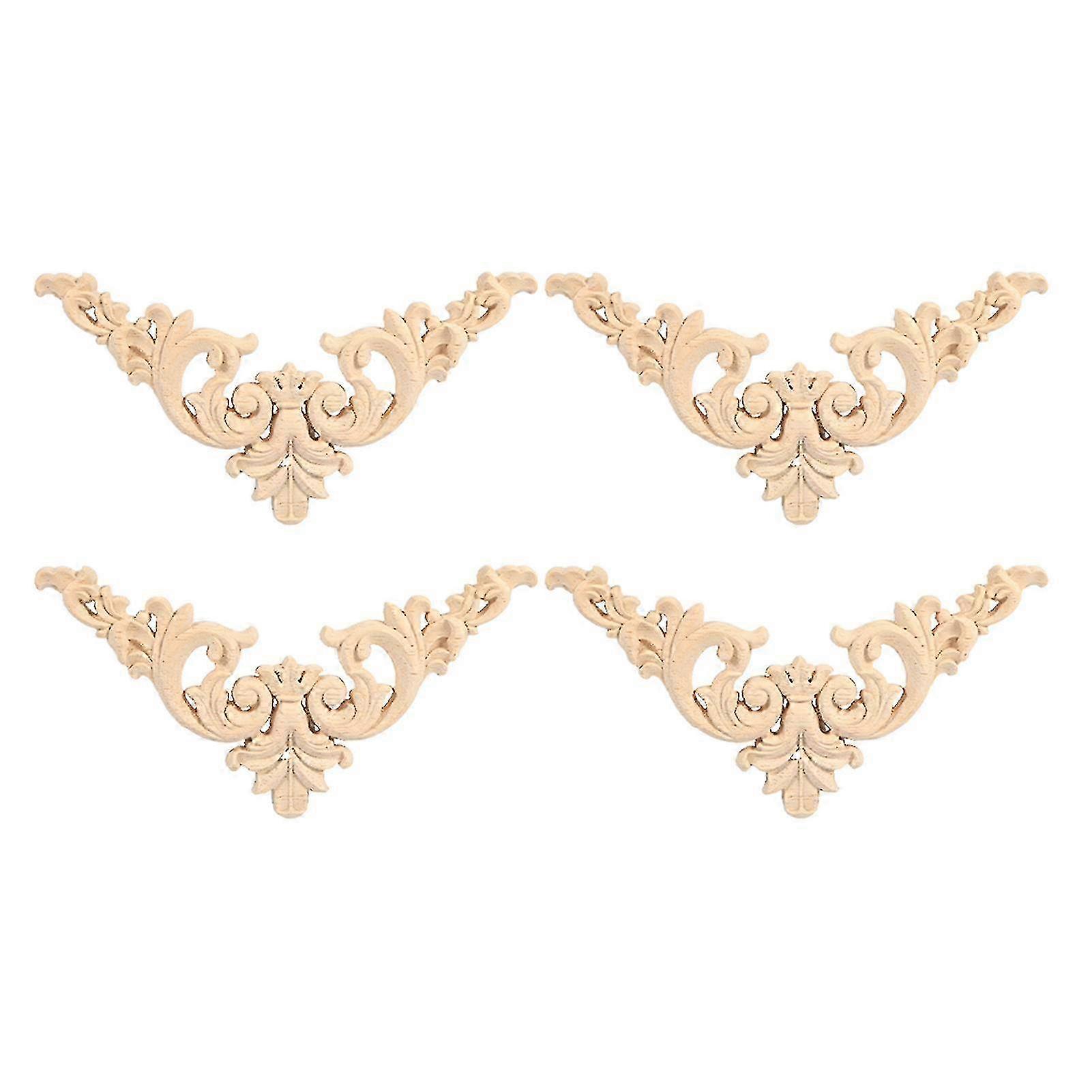 4PCS Wood Carved Corner Onlay Furniture Applique with Rubber, Flower Shape, Unpainted, Size 12x12cm