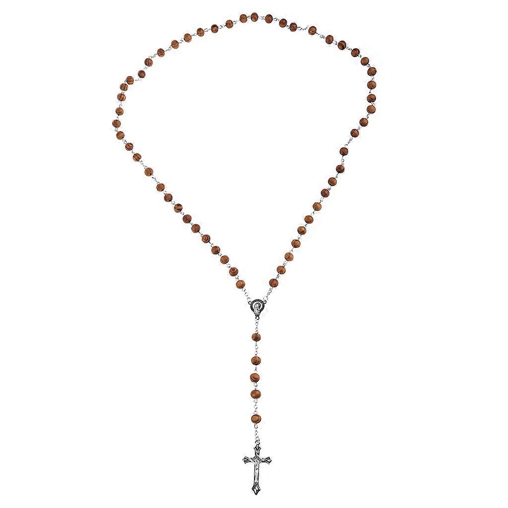 Crucifix Rosary Necklace Art Collectible Wood Handicraft Carfts Ornament for Home Church Meditation Belief Present Sup Multicolor
