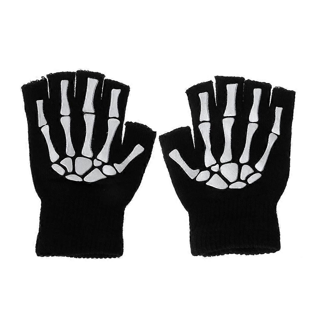 Half Finger Skeleton Cycling Gloves Winter Keeping Warm Hiking Accessory for Children Boys Girls Outdoor Exercise Supply Multicolor
