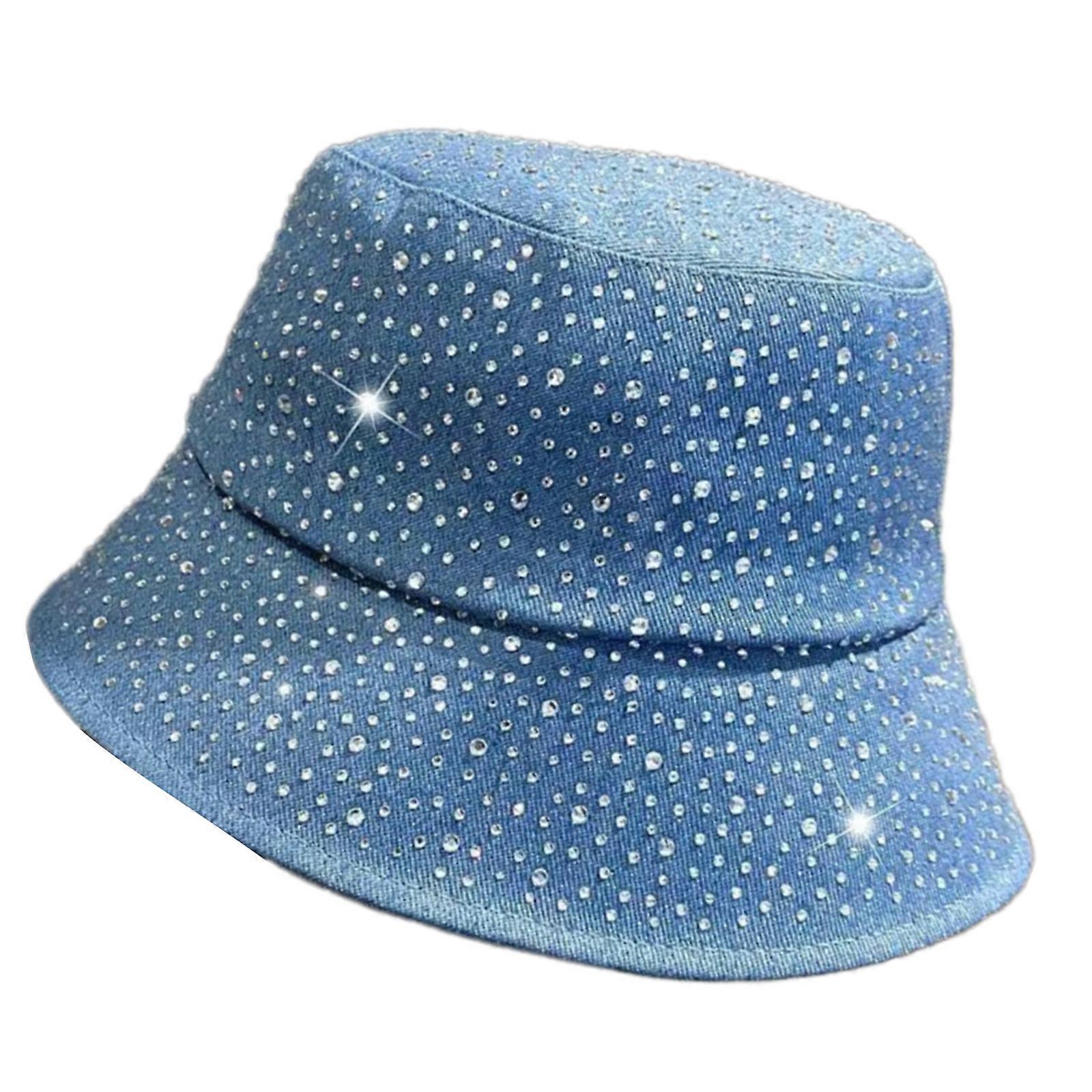 Rhinestones Fisherman Hat Foldable Sun Hat Breathable Headwear for Adult Outdoor Activity Beach Camping Travel Essential Middle Blue