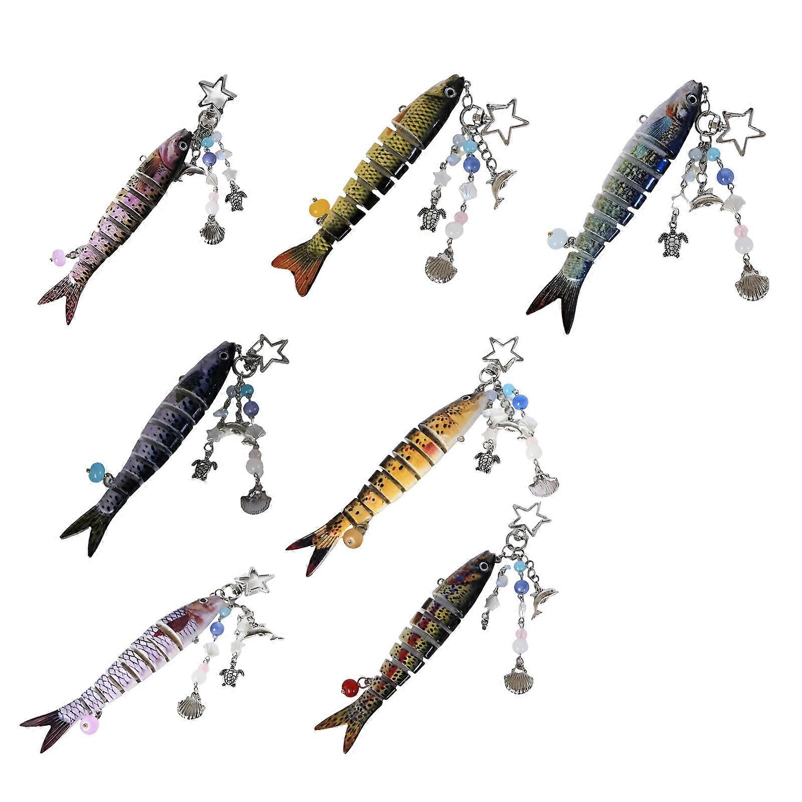 7 Pieces Handcrafted Fish Keychain Set Plastic Lanyard Accessories For Fishing Enthusiasts Handmade Jewelry Gifts Multicolor