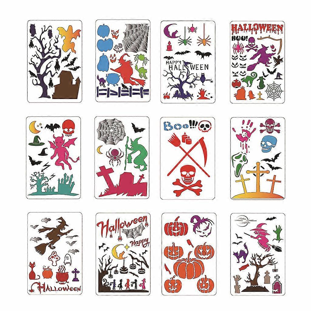 12Pcs Halloween Drawing Template Stencils Reusable Anti-break Painting Stencils for Painting on Wood Wall Glass Canvas Multicolor