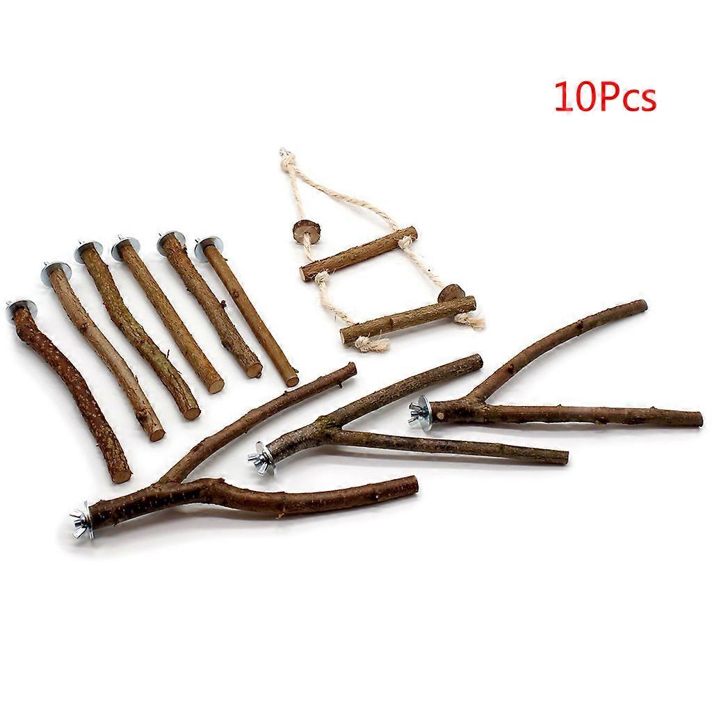 10Pcs Parrot Stand Rod Natural Wood Fork Perch Hanging Swing Pet Bird Chewing Toy Playground Multicolor