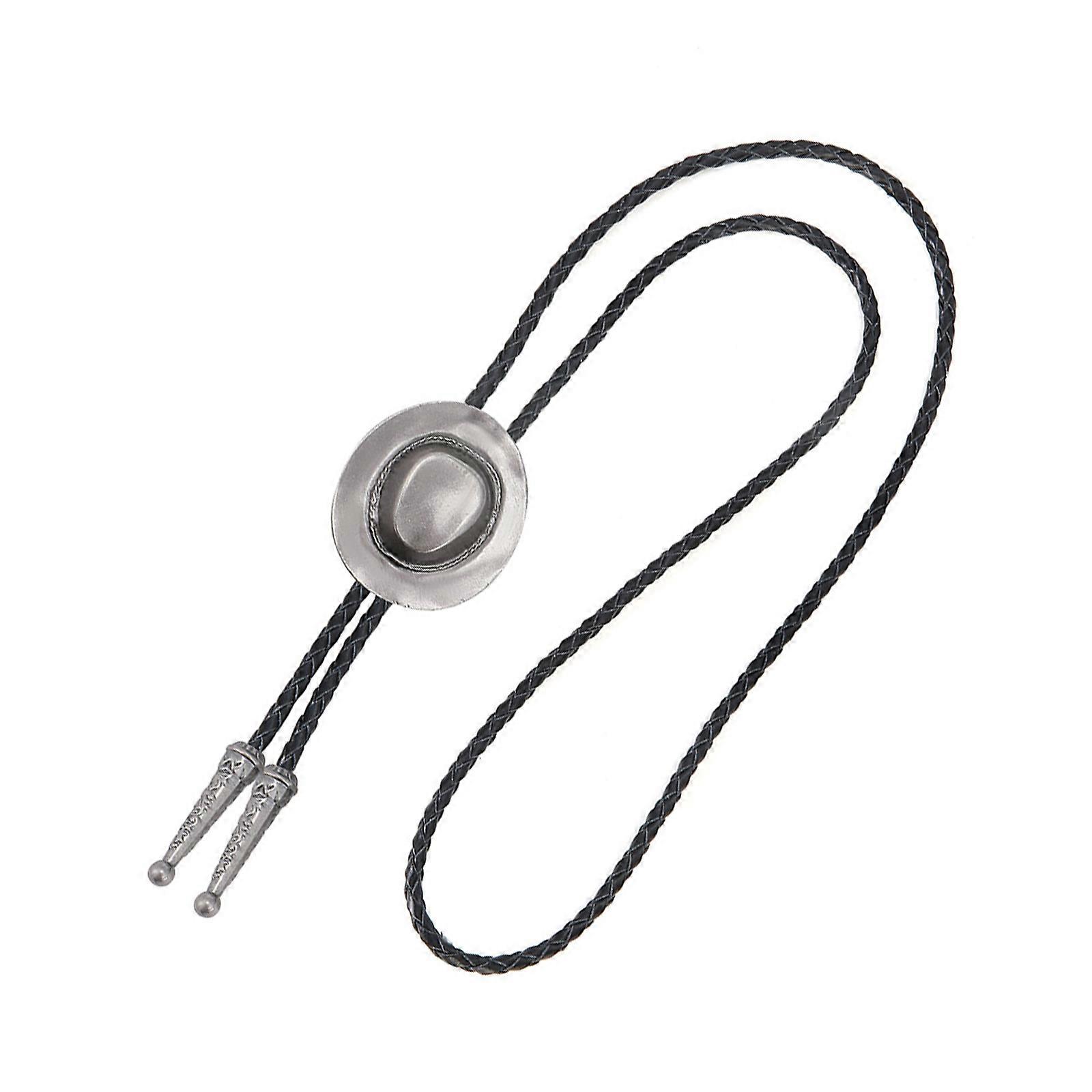 Vintage Adjustable Faux Leather Cord Bolo Tie with 3D Cowboy Hat Accent Mens Fashion Western Necktie Chain Accessories Ancient silver