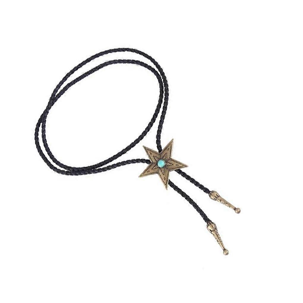Black PU Leather Western Cowboy Rodeo Bolo Tie Bola Necklace Stylish and Trendy