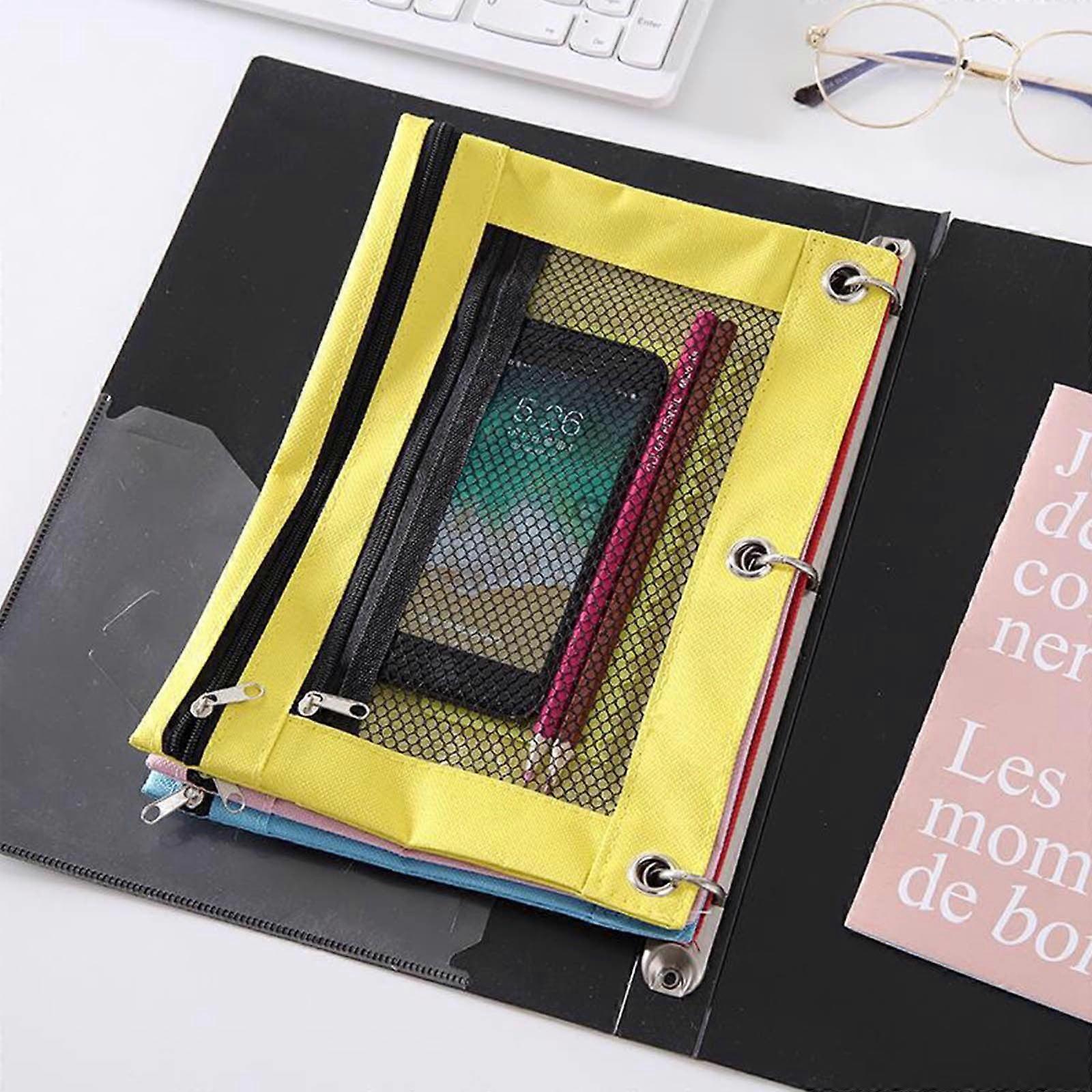 Ruhiku GW 3 Ring Binder Pencil Pouch, Zippered Double Pocket Case with Clear Window for Office, Cosmetics & Supplies
