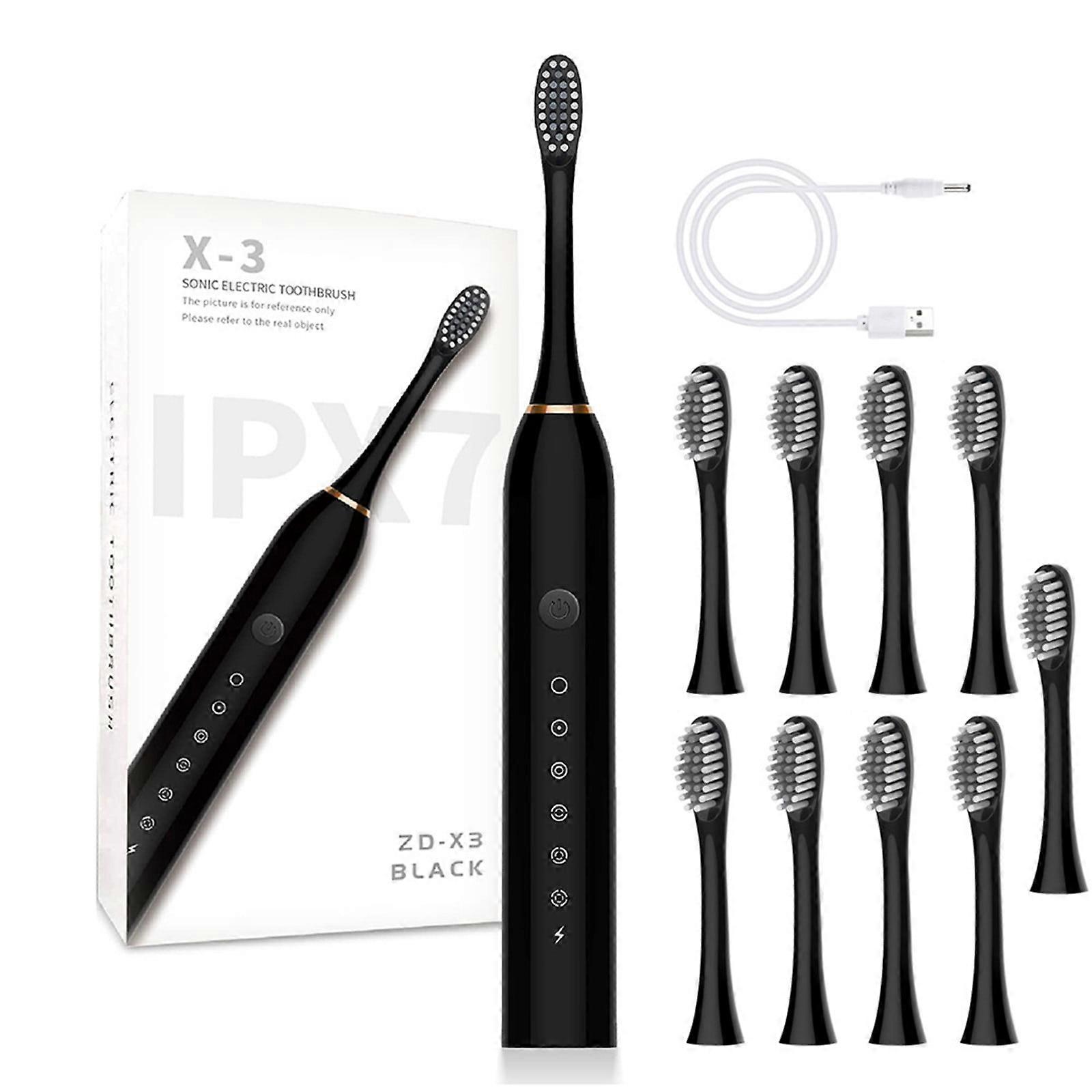 🔔🔔Hello friend, welcome to Leodye Online shop. We are dedicate to bring better products to you with proper price!🔔🔔 Electric Toothbrush Electric Toothbrush With 10 Brush Heads 6 Cleaning Modes Upgraded Electric Toothbrush Longer Life Faster Chargin Feature: Material: ABS Colour: Black Net weight: 90g/0.19lb Gross weight:200g/0.44lb Product size:22x2.5x2.5/8.66x0.98x0.98in Packing size:22x7x4cm/8.66x2.75x1.57in performance: IPX7 Power: 1.5W Rated voltage: 5V Input voltage: 5V 1A Cleaning frequency: 32000-42000/times Timing function: 2 minutes timing, 30 seconds pause Noise: 45 decibels Charging time: 8 h Battery life: 15-30 days Description: 【Deeply Clean Teeth and Removes up to 5X More Stains 】Electric toothbrush Vibration frequency: 42000 times/minute, removing up to 5X more stains vs. a manual toothbrush. gently pulses fluid between the teeth and along the line for a gentle and effective clean every time. 【6 Modes for Different Teeth and Conditions】The electric toothbrush has 6 modes, suitable for adults. Working mode: Novice mode/mild mode/cleaning mode/brightening mode/polishing mode/massage mode 【10 Replaccement Heads for over 2 Years Using】The soft, bristles are designed to suit teeth topography and up to 100 percent more stains from spots. Interdental brush can go into the teeth and ideal for cleaning between braces, crowns, and implants. 【8 Hours Charging for 60 Days Using】Working time: if you use it at 3 minutes each morning and evening, a total of 60 days, brushing cycle (when fully charged).Electronic toothbrush run for more than 60 days with 8 hour charge. USB cable 5V 1A Adapter (Adapter is not included in the package) or applicable to a USB port, such as phone, power bank and so on. Great for carrying and traveling. 【IPX7 Rechargeable toothbrush with IPX7 rated design, so the entire toothbrush can be safely rinsed with water and user can safely use toothbrush in the bath or shower. Package : 1x Electric toothbrush 10x Toothbrush mind 1x Manual 1x Charging cable Leodye Summer Sales; Leodye Special Offers; Leodye Mother's Day Special Offers; Leodye Father's Day Special Offers; Independence Day Special Offers; 4th of July; Back to Season Sales Made of good materials, safe and durable, with excellent texture. Good and economical, we provide you with quality household supplies. The size of the product is measured manually, and there will be a little error of measurement. We hope you can understand. Take care about the color. Due to different angle of shot, lighting, PC display, there maybe a little differences between the pictures and product itself. However, we try our best to make the color as accurate as possible. If you have any problems, please feel free to contact us. We will help you to solve them as soon as possible.
